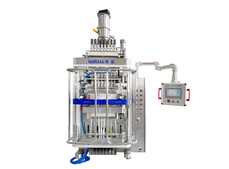 Samfull, hazır kahve tozu ve öğütülmüş kahve için 4-12 şeritli çok şeritli stick pack paketleme makinesi sunar.