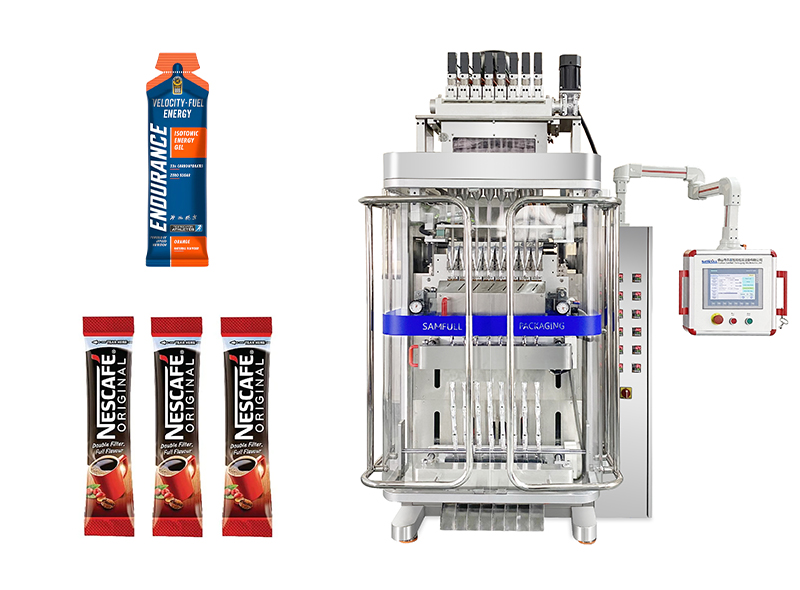 Nous proposons une machine d'emballage en stick de 4 à 10 pistes pour les liquides, les poudres et les petites particules, comme le café moulu, les boissons en poudre, les bonbons à la gelée, le miel, les sachets de rince-bouche, sucre, etc.