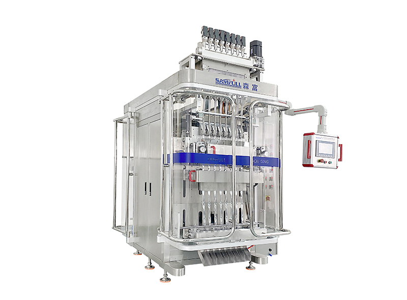 Pharmacy Stick Bag Multilane Packing Machine is a specialized packaging machine used in the pharmaceutical industry to package medications and other pharmaceutical products into stick bags. The machine is designed to automate the process of filling, sealing, and packaging multiple stick bags simultaneously in a single operation.
