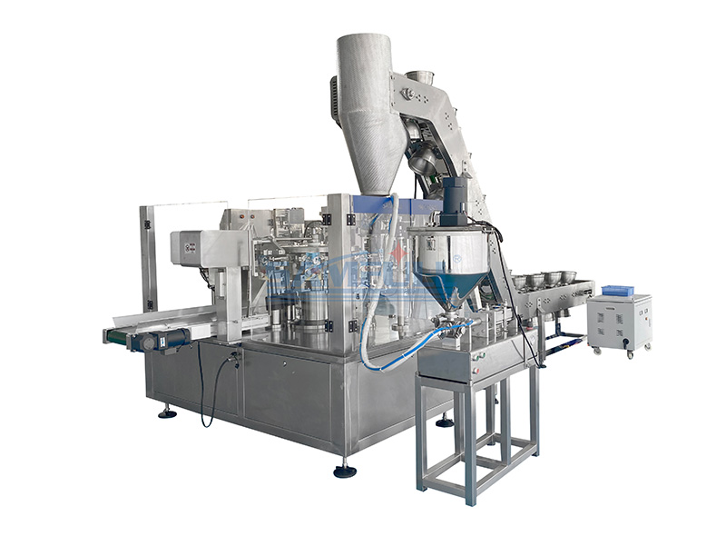 The whole set of equipment consists of a liquid piston filling machine, a granule weighing machine, and a premade pouch packaging machine, suitable for packaging mixed products of liquid and granules.